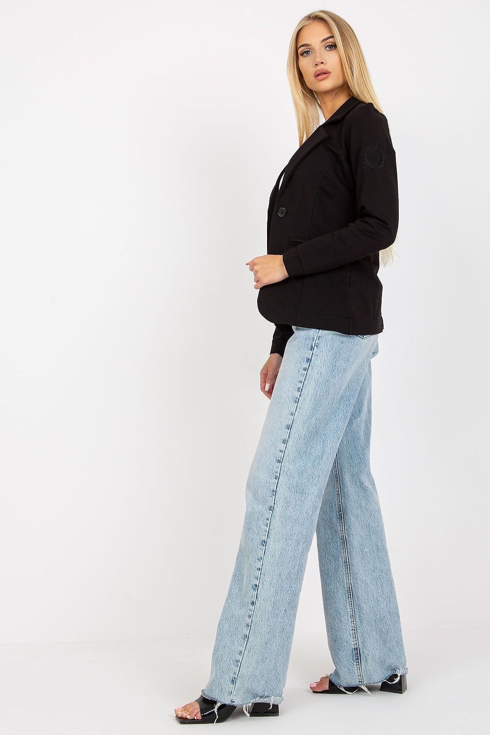 Long-sleeved jacket with a single button closure. Decorative patch on the left sleeve. Perfect for many occasions.