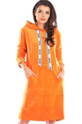Kleid in Midilänge aus Velours. Das Kleid hat eine äußerst praktische große Tasche auf der Vorderseite. Bänder mit dem Markenlogo verleihen Charme. Sie können es als Kleid oder als längere Bluse zu Hosen oder Leggings tragen. Das Material, aus dem es hergestellt ist, ist sehr angenehm bei Berührung und Körperkontakt. Das Produkt wurde in Polen entworfen und hergestellt.