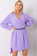 Gerade geschnittenes Kleid mit hochgekrempelten Ärmeln. Das Kleid ist aus einfarbigem Stoff gefertigt. Kleid mit Gürtel. Ideal für den Sommer.