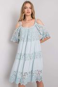Phänomenales Kleid mit kurzen Ärmeln, an den Schulterträgern. Das Kleid hat interessante Spitzeneinsätze. Ideal für viele Gelegenheiten.