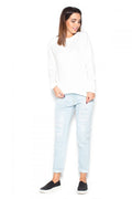 Bluse aus weichem Strick-Sweatshirt. Schlichter Schnitt mit Bündchen unten und an den Ärmeln, Zierschleife am Rücken. Perfekt als Ergänzung zu klassischen Stylings.