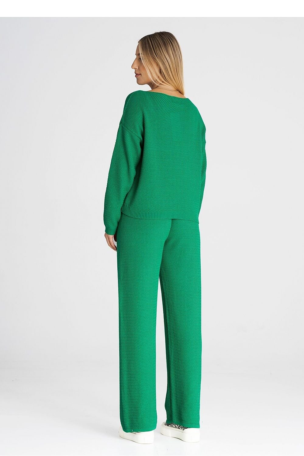 Ein Set bestehend aus einer langärmeligen Bluse und einer langen, lockeren Hose, die in der Taille gebunden wird.