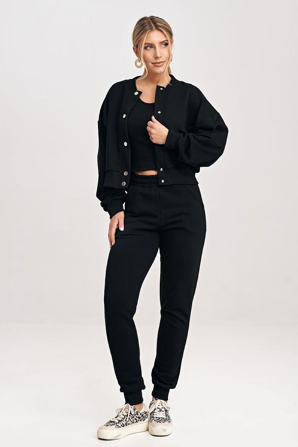 Komplett Trainingsanzug bestehend aus einer Jacke mit Reißverschluss, Trainingshose und einem Top. Die Jacke hat lange Ärmel und wird mit Druckknöpfen geschlossen. Lange Hosen mit Gummizug in der Taille und Eingrifftaschen. Kurz geschnittenes Top mit Rundhalsausschnitt und Trägern. Einheitsgröße für Personen, die Größe S oder M tragen.