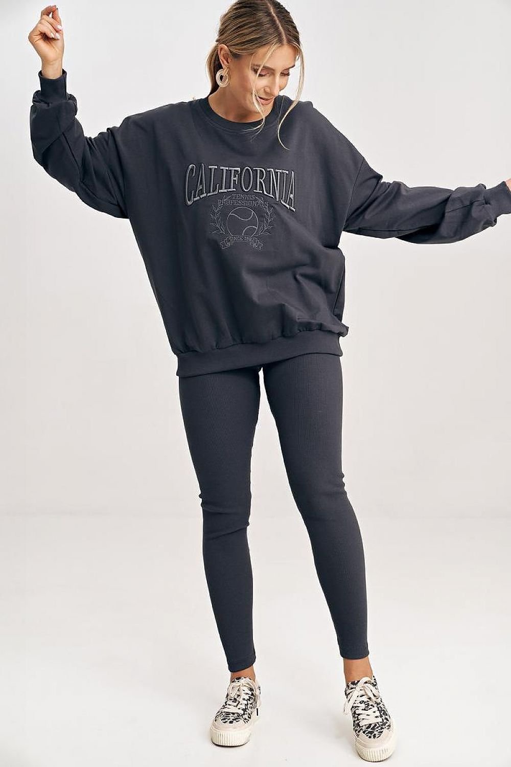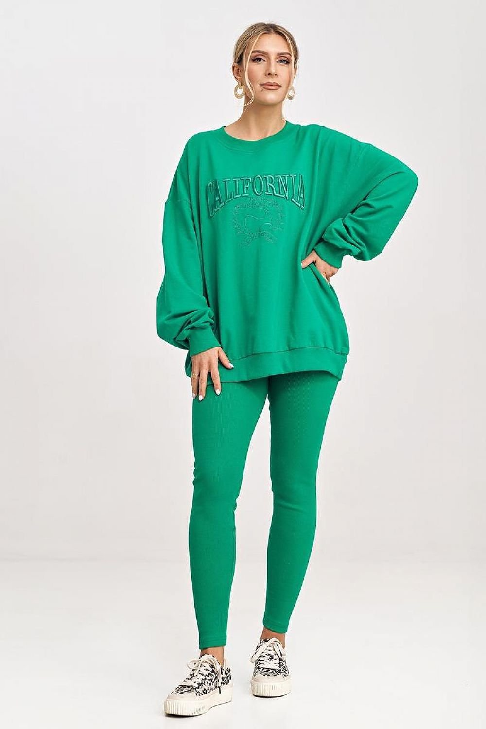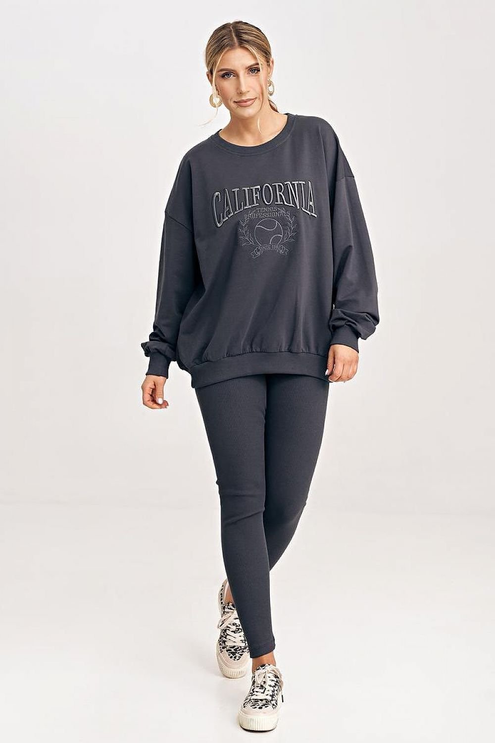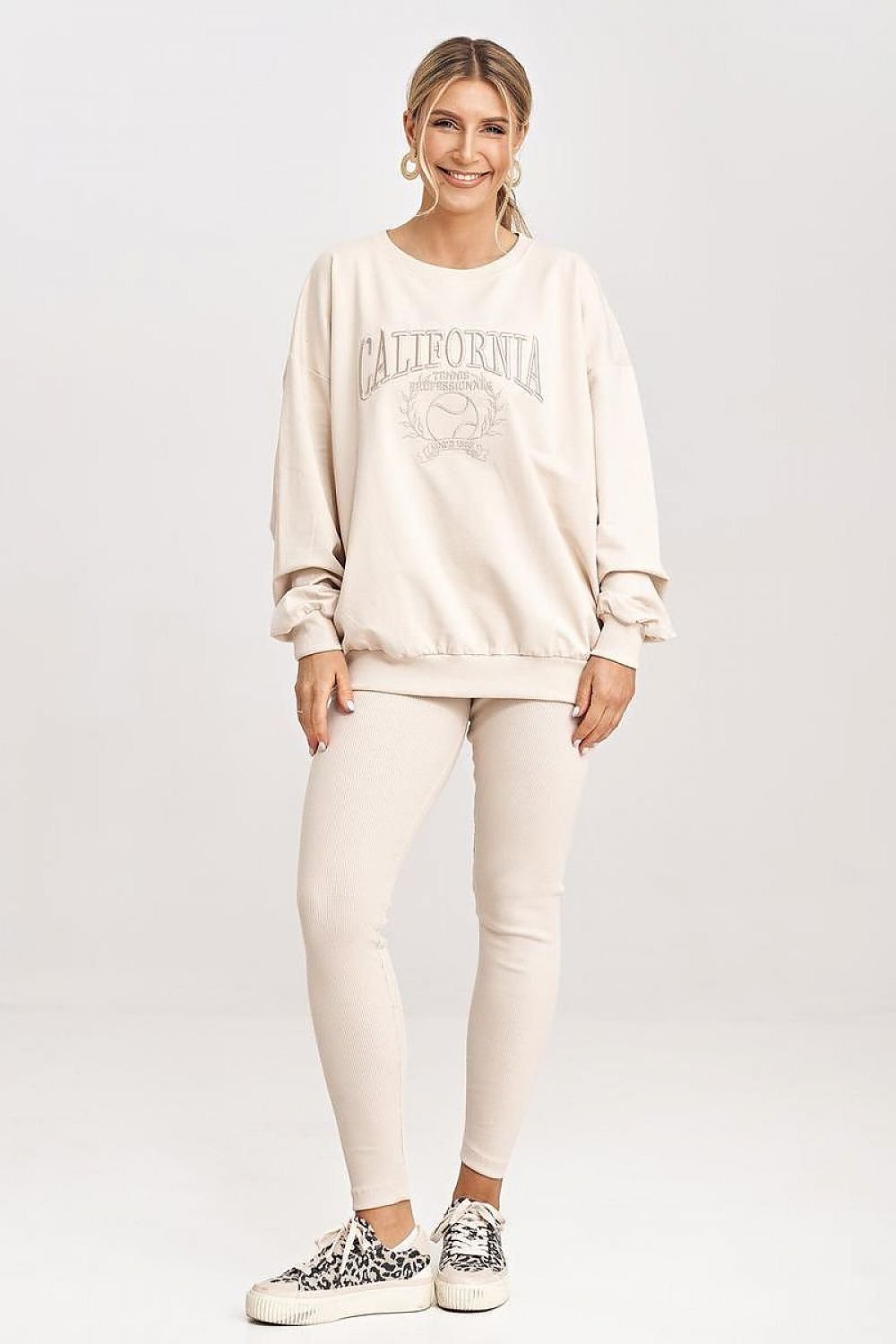 Zweiteiliger Trainingsanzug bestehend aus Pullover und Leggings. Verlängerter Pullover mit langen Ärmeln und rundem Ausschnitt. Lange Leggings mit Gummibund in der Taille. Einheitsgröße für Personen, die Größe S oder M tragen.