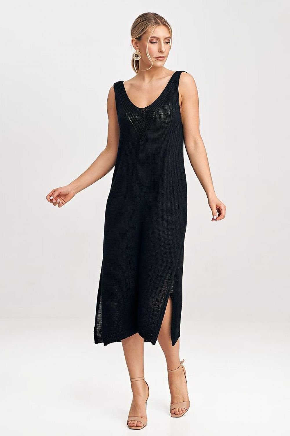 Zweiteiliges Set, bestehend aus einem Midikleid und einem Bolero. Bolero mit langen Ärmeln, offen und mit einer Zierschleife vorne. Kleid mit breiten Trägern und tiefem Ausschnitt.