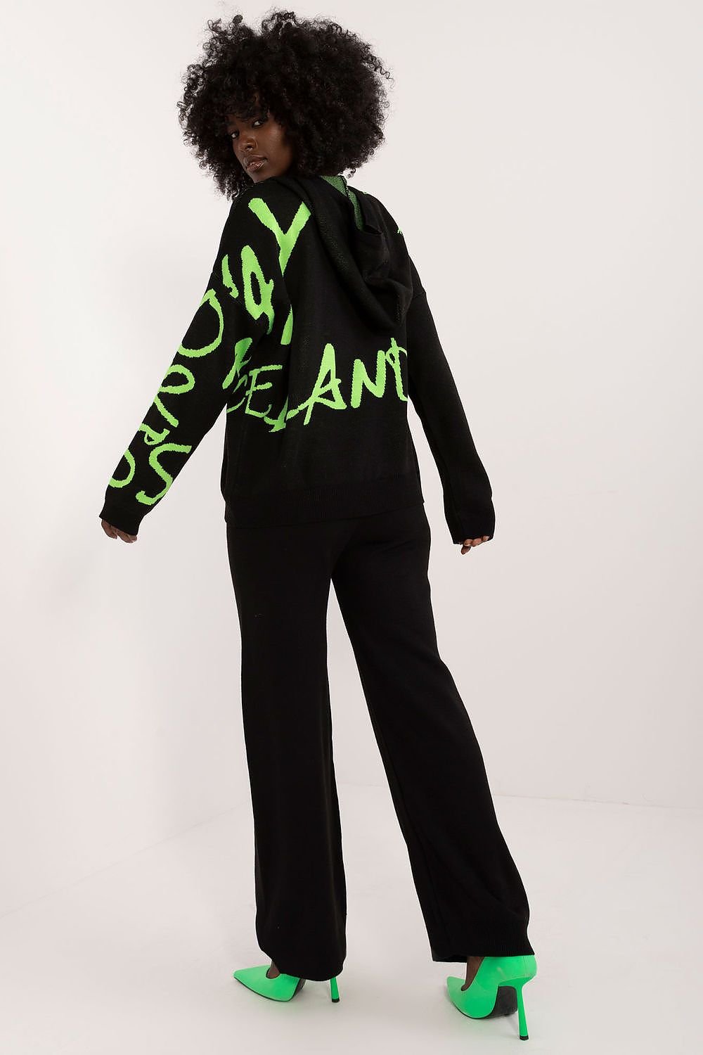 Komplet bestehend aus einem Pullover mit buntem Aufdruck und einer Hose aus einer weichen Mischung aus Acryl und Wolle. Der Pullover hat lange Ärmel und eine Kapuze, die stilvolles Aussehen mit Funktionalität kombiniert, ideal für den täglichen Gebrauch. Die Hose mit geraden Beinen hat eine bequeme Taillenschnürung für Tragekomfort und Passform. Die Standardlänge macht das Set vielseitig und eignet sich hervorragend für den täglichen Gebrauch, indem es einen lässigen Stil mit einem modischen, markanten Design kombiniert.