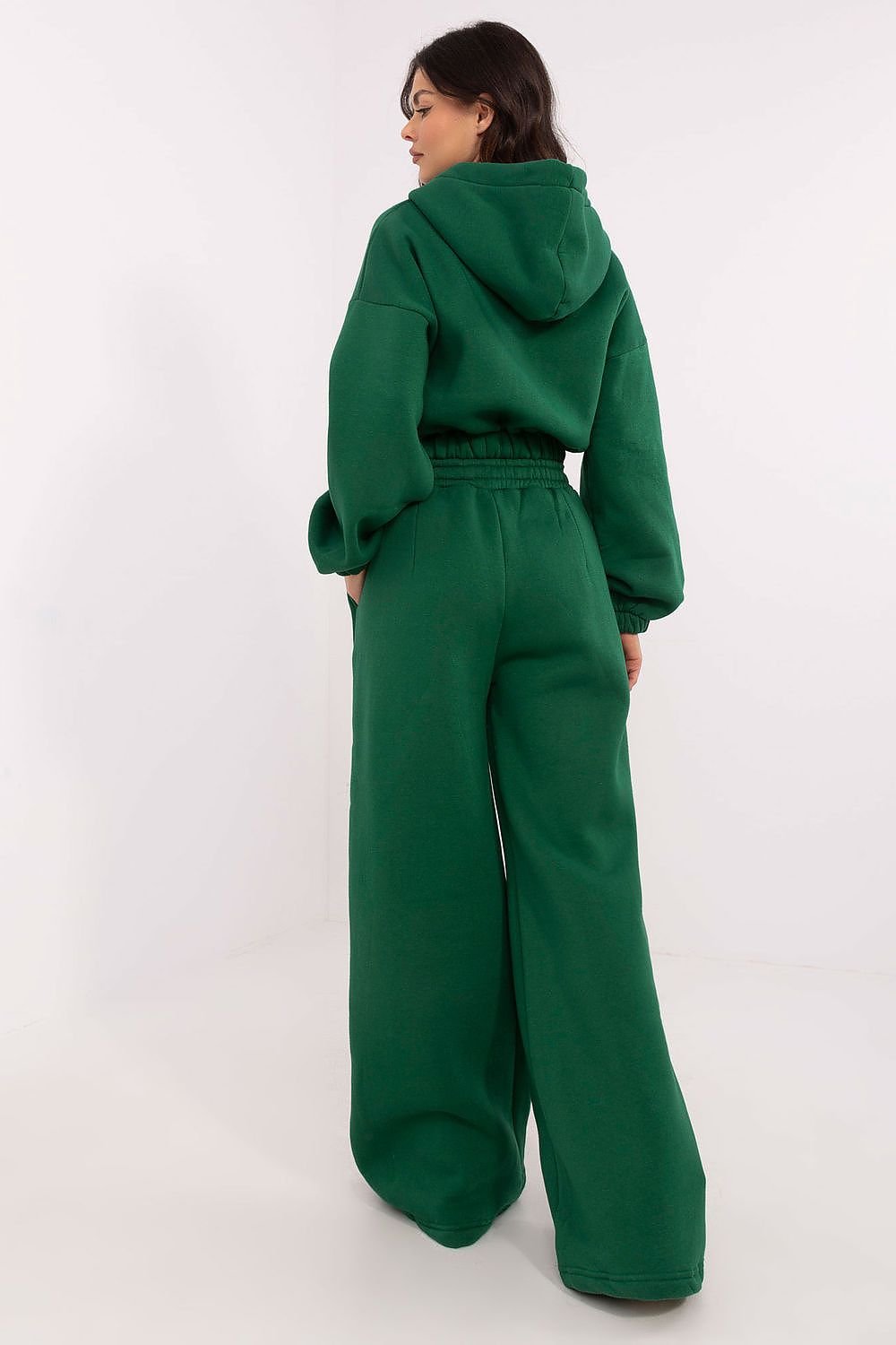 Bequemer und stilvoller Damen-Sweatsuit ist die perfekte Wahl für den täglichen Aktivitäten. Der Anzug besteht aus einem kurzen, lockeren Hoodie mit einem Reißverschluss vorne bis zur Mitte, was Praktikabilität und Anpassungsmöglichkeiten gewährleistet. Der Hoodie mit langen Ärmeln schützt perfekt vor Kälte, und sein melierter Druck verleiht ihm einen modernen Charakter. Die Hose mit hohem Bund und weiten Hosenbeinen bietet Komfort und ein modisches Aussehen. Der Gummizug in der Taille sorgt für eine perfekte Passform, und die seitlichen Einschubtaschen sind eine praktische Lösung für kleine Gegenstände. Die Hosen sind lang, was sie zu einer idealen Wahl für kühlere Tage macht. Das gesamte Set besteht aus einer weichen Mischung aus Baumwolle und Polyester, die Tragekomfort, Langlebigkeit und angemessene Temperaturregulierung bietet. Der Anzug eignet sich hervorragend für Spaziergänge, Treffen mit Freunden oder Entspannung im eigenen Zuhause.