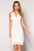 Dieses feminine Nachthemd passt sich perfekt an den Körper an und bietet höchsten Tragekomfort. Der Halsausschnitt ist mit schönen Falten verziert. Zurück mit einem verführerischen Schlitz. Schlitz und unterer Teil des Hemdes mit Spitze verziert.