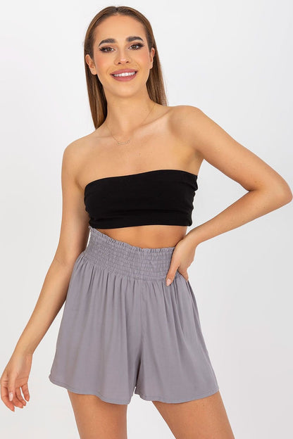 Damen-Shorts in lockerer Passform mit hoher Leibhöhe. Kurze Hose mit breiter elastischer Bügelfalte, ohne Taschen.