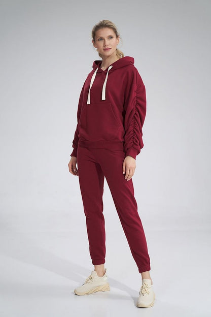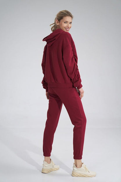 Jogginghose aus Baumwolle. Breites Gummiband in der Taille. Die Beine sind mit einem Gummiband versehen. Ohne Taschen.