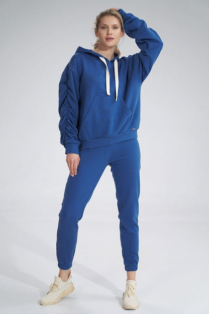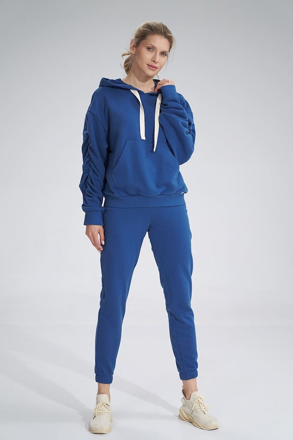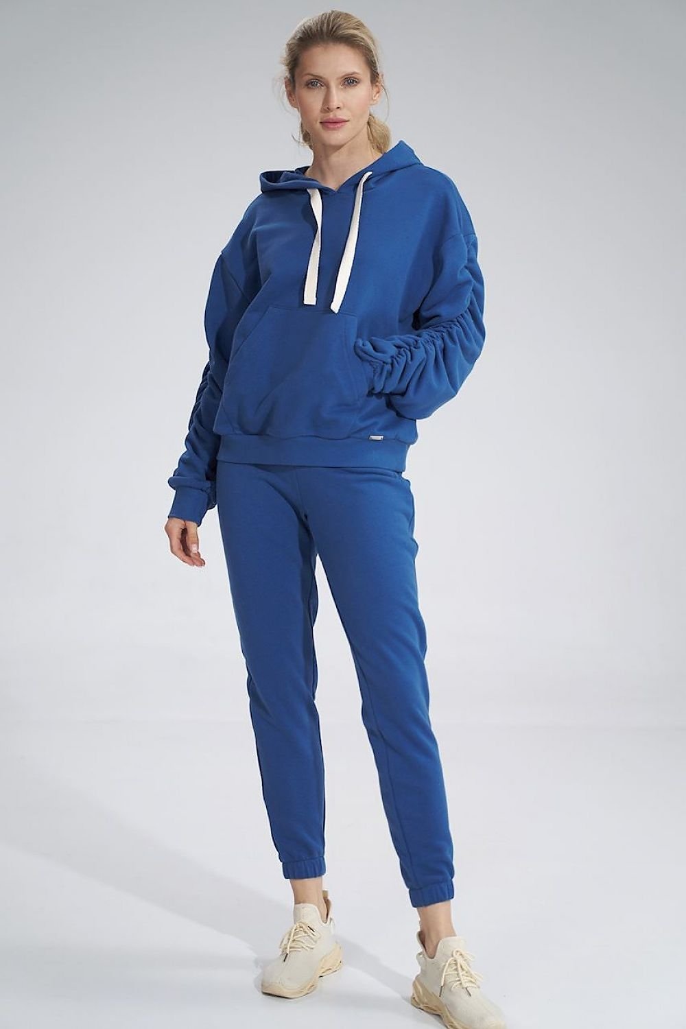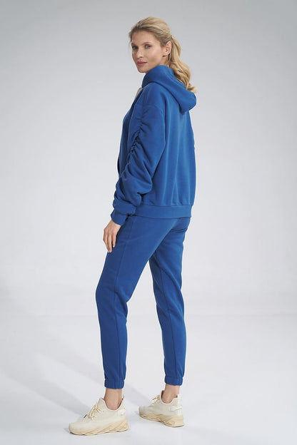 Jogginghose aus Baumwolle. Breites Gummiband in der Taille. Die Beine sind mit einem Gummiband versehen. Ohne Taschen.