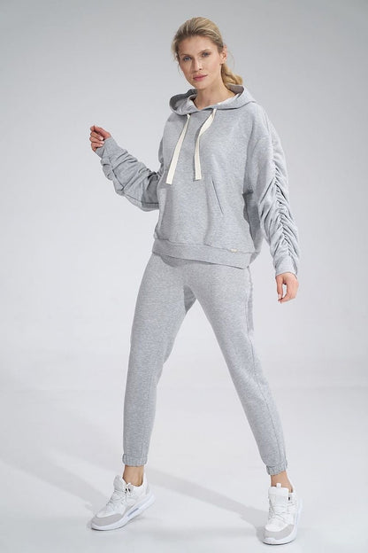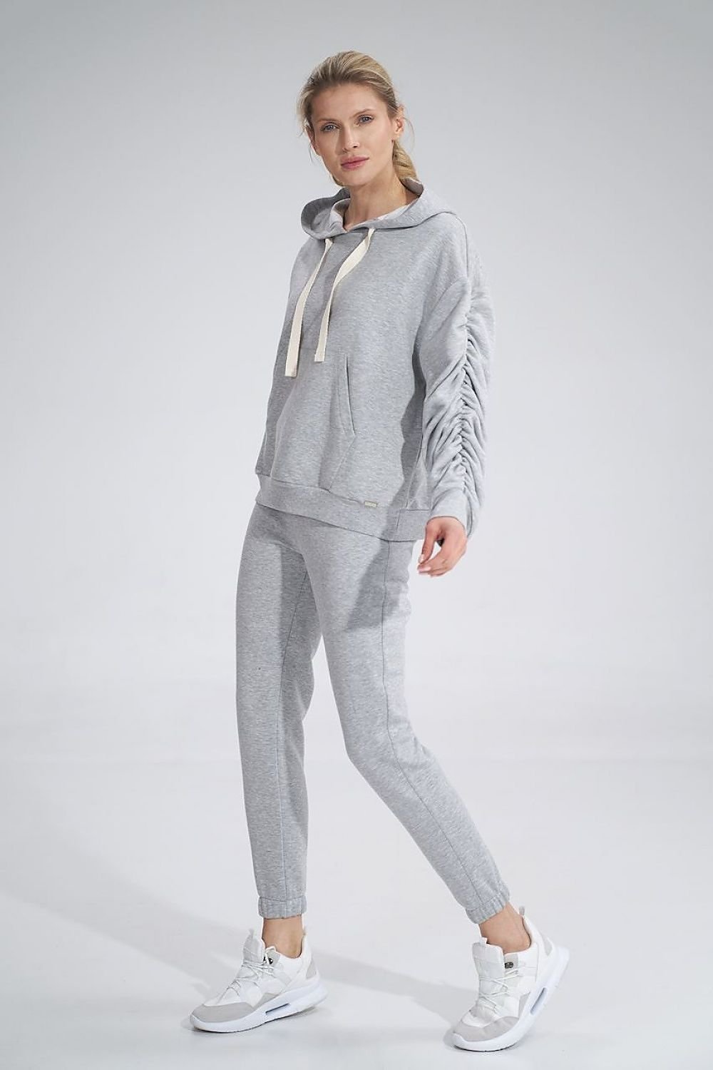 Jogginghose aus Baumwolle. Breites Gummiband in der Taille. Die Beine sind mit einem Gummiband versehen. Ohne Taschen.