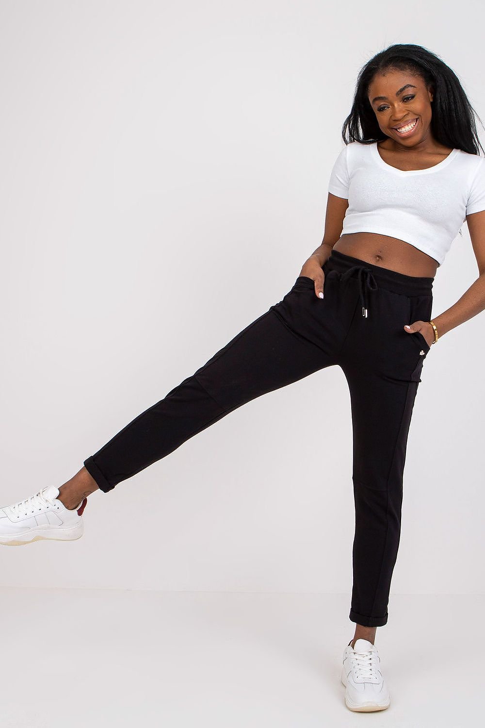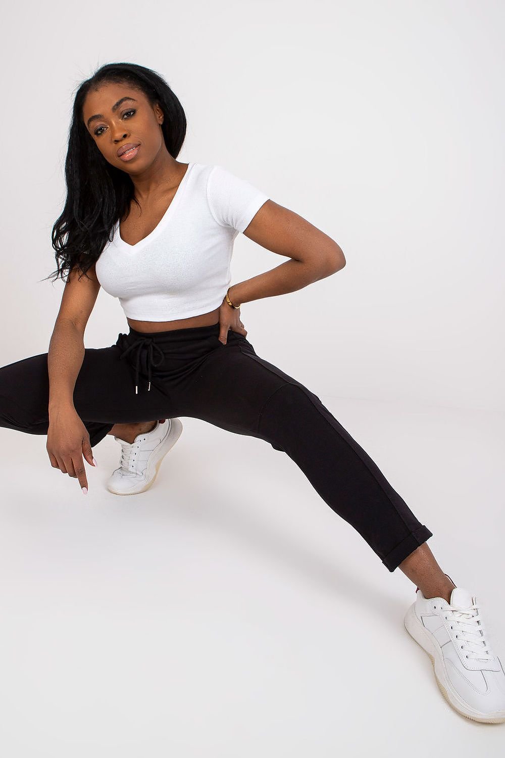 Hochtaillierte Jogginghose mit elastischem Bund und Kordelzug. Hose mit Schlupftaschen an den Seiten. Ideal für das tägliche Tragen.