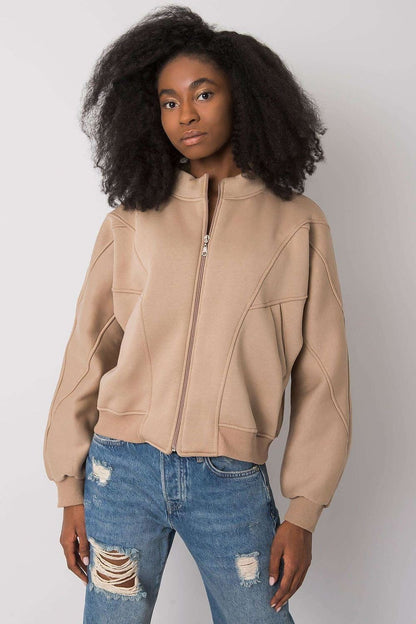 Gerade geschnittenes Sweatshirt mit Reißverschluss. Das Sweatshirt hat Schlupftaschen auf der Vorderseite.