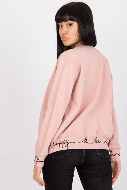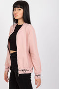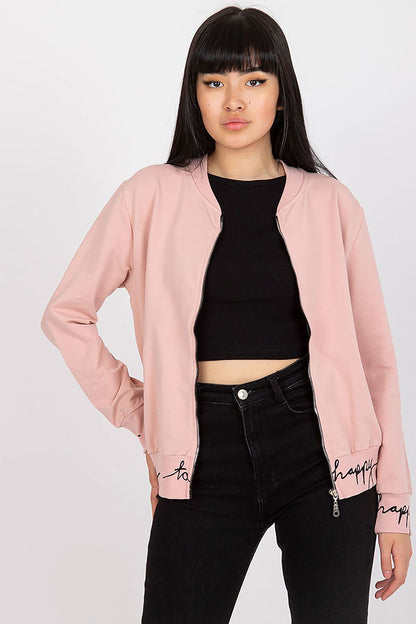 Langärmeliges Damen-Sweatshirt mit Reißverschluss. Aufgesetzte Taschen an den Seiten. Bund mit kontrastierender Aufschrift.