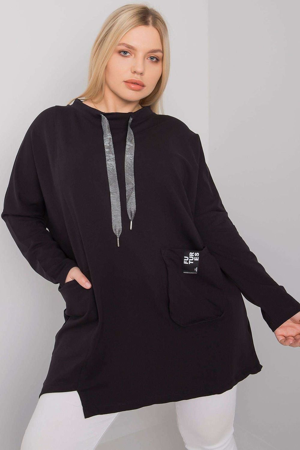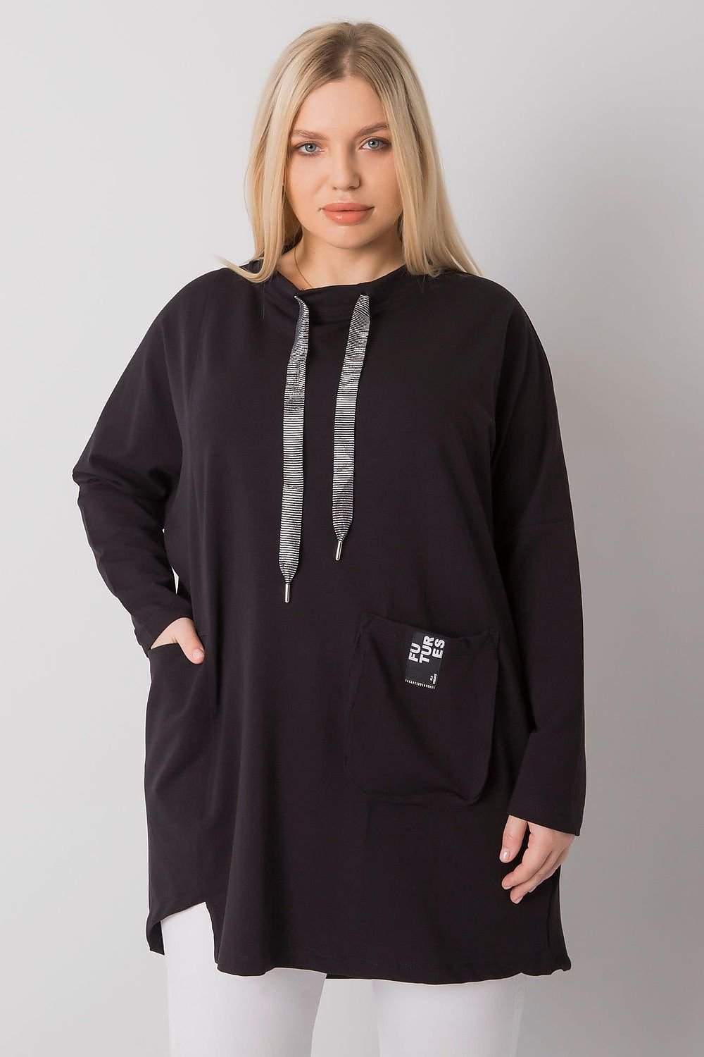 Schwarze Tunika mit Taschen. Tunika mit langen Ärmeln.