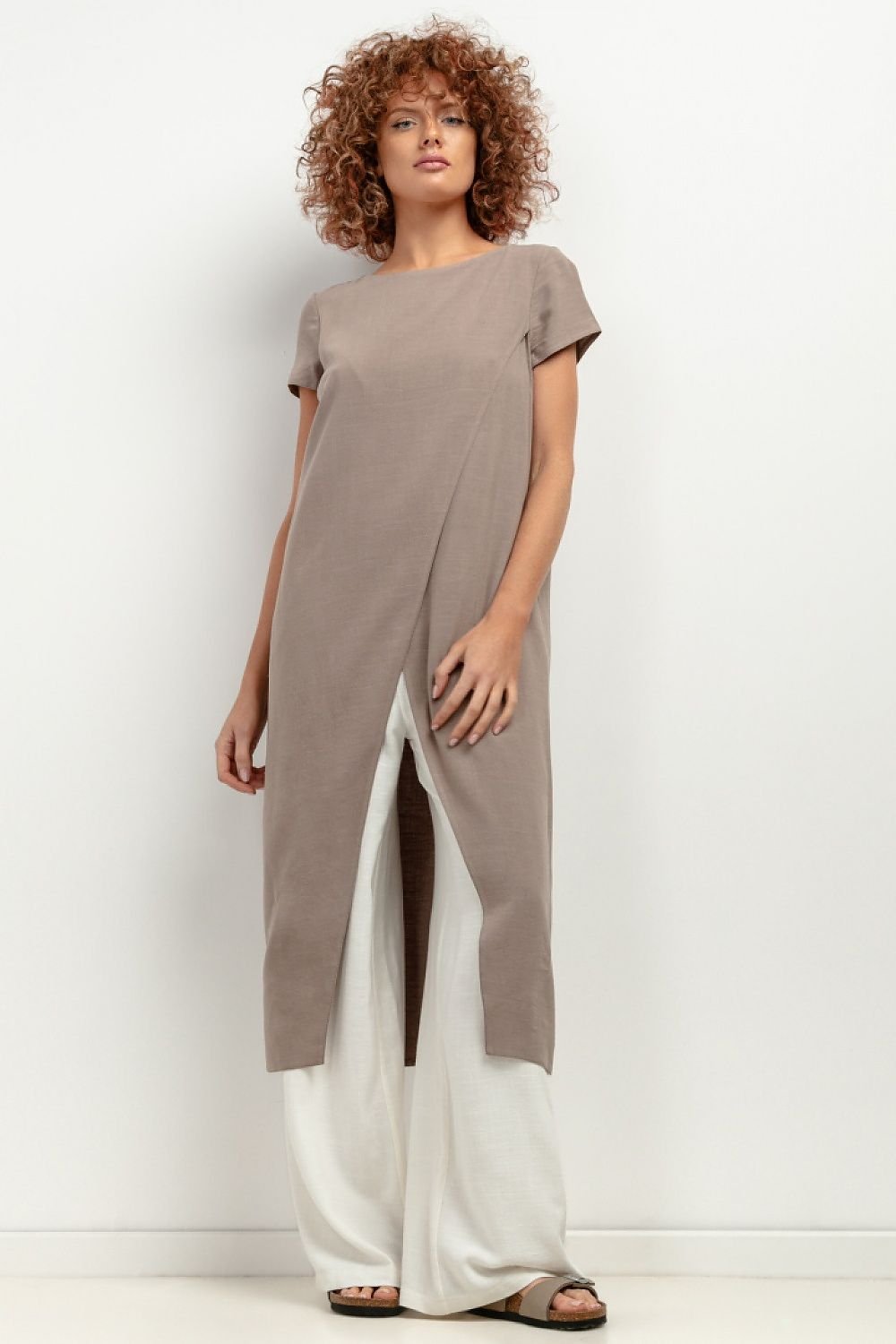 Die Tunika T405 ist die perfekte Wahl für jede Frau, die ein originelles und luftiges Kleidungsstück für die kommenden Sommertage sucht. Dank des leichten Stoffes aus 70 % Viskose und 30 % Leinen eignet sich diese Tunika perfekt als Strandaccessoire oder als lockerer Überwurf für das tägliche Sommeroutfit. Der originelle Schnitt und die hohe Qualität der Materialien garantieren einen hohen Tragekomfort auch an heißen Tagen. Wenn Sie sich für die Tunika T405 entscheiden, investieren Sie nicht nur in ein modisches Accessoire, sondern auch in die Pflege Ihrer Haut. Naturfasern wie Leinen und Viskose lassen die Haut atmen, was besonders bei heißen Temperaturen wichtig ist. Außerdem schmiegt sich das weiche Material sanft an Ihren Körper an, ohne Sie zu erdrücken oder unbequem zu machen. Dank des vielseitigen Designs der Tunika T405 können Sie eine Vielzahl von Looks kreieren, von leger bis elegant. Sie eignet sich sowohl als Sonnenschutz am Strand als auch als leichter Pullover zur Jeans an Sommerabenden. Mit dem richtigen Schnitt fühlen Sie sich feminin und selbstbewusst, egal zu welchem Anlass. Mit dem Kauf der Tunika T405 aus natürlichen Stoffen unterstützen Sie den Gedanken der ökologischen Mode und des Umweltschutzes. Leinen und Viskose sind biologisch abbaubare Materialien, so dass Ihr Kauf die kollektive Ökologie des Planeten nicht belastet. Entscheiden Sie sich für verantwortungsbewusste Mode, ohne auf Ihren originellen Stil verzichten zu müssen!